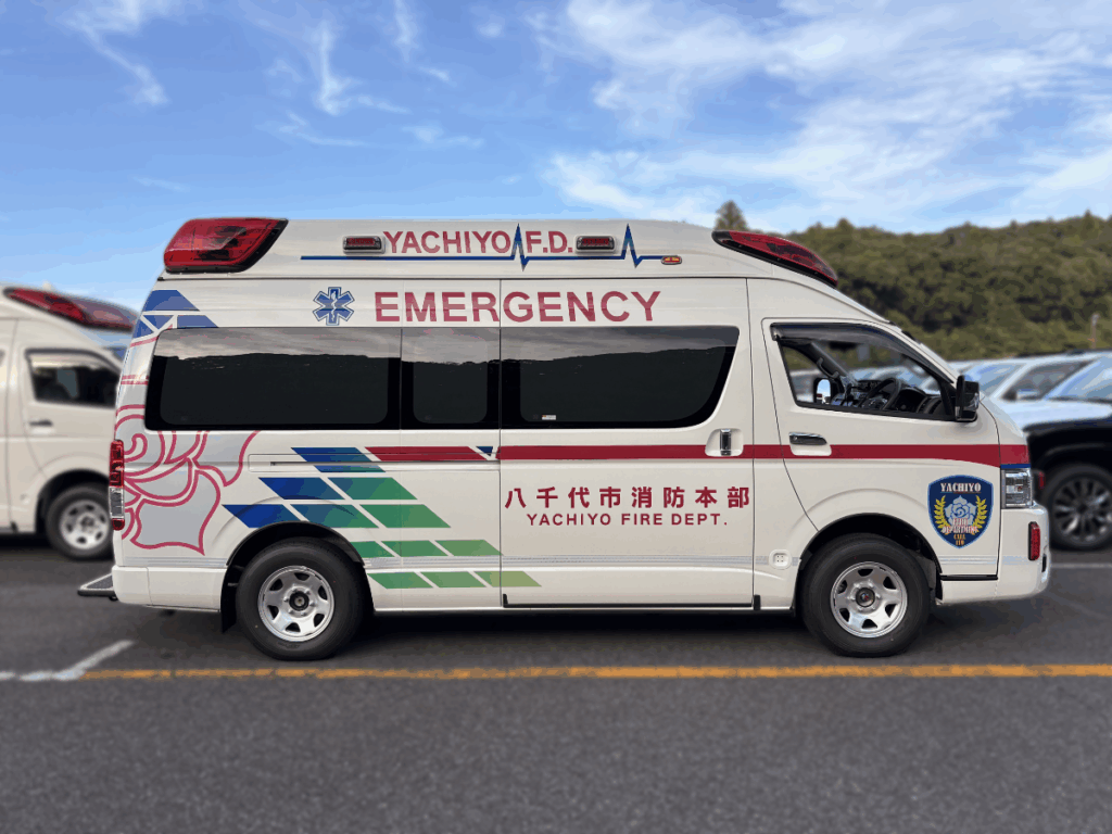 このたび八千代市消防本部様よりご依頼をいただき、トヨタ製救急車への車輌マーキング施工を行ないました。